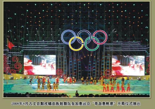 默戎苗鼓舞队参加奥运会“青岛奥帆赛”开幕仪式演出