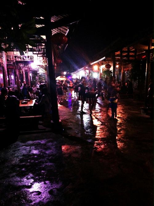 4月14日晚,夜色深沉,细雨绵绵,默戎镇墨戎苗寨内,游客仍熙熙攘攘,在迷人的夜景中,伴着热情酣畅的苗歌饶有兴致地品尝着苗家大餐、观赏着苗家传统表演。