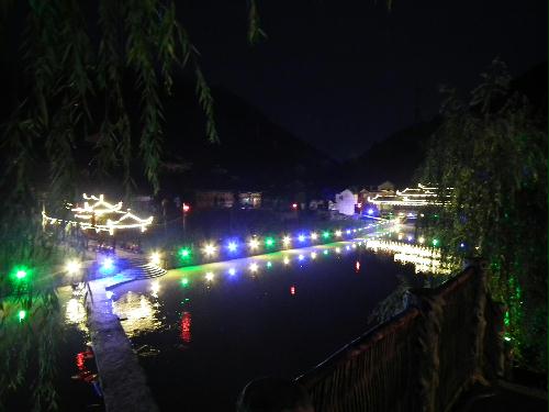 “硬件”上苗寨风景区完善基础设施建设,为旅游发展奠定了公共基础。扩建停车场、新修表演场、设置长廊观演席、增加门板宴坐席提高接待量、规范景区餐饮卫生价格标准,尤其是风雨桥的建成、拦水坝的蓄水、滚水车的下水、同建同治的卫生改善使依山傍水的墨戎苗寨集山、水、桥为一体,以一幅巨型山水画形式呈现在广大游客眼前,旅游意境浓浓;苗寨亮化工程的新增更让苗寨风景区多了一道亮丽的夜景风光,每当夜幕降临,风雨桥上、入寨长廊、苗寨四周光彩夺目,小河两边的三色彩灯更是增色添彩,整个墨戎苗寨景区就像一个头戴银饰身着苗服的美丽苗家少女,银光闪闪展示出她婀娜多姿的曲线身材,给远道而来的四面八方游客眼前一个盛大惊喜,让每位游客高高兴兴入寨门挑战三卡—歌卡、酒卡、鼓卡,在悦耳动听的送客歌声中开开心心出苗寨,每每欣赏完这位“漂亮苗家女孩”后,游客都发出深深的感叹——这里就是神秘湘西的“小凤凰”。