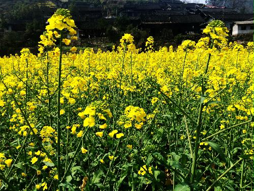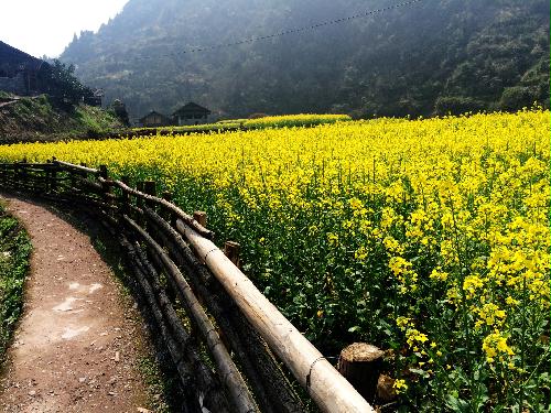 三月春风轻拂,遍地黄花绽放。3月15日,笔者在古丈县默戎镇万岩村看到,油菜已进入盛花期。放眼望去,山间铺陈着一片片金黄色的毯子,花朵随风摇曳,蜜蜂飞舞其间,幽香四溢。怒放的油菜花海与独具特色的苗家木屋相互辉映,形成一幅幅美丽纷呈的画卷,增添了乡间田园缤纷的景致。春意盎然的美景更是吸引了许多摄影爱好者前来观赏拍照。