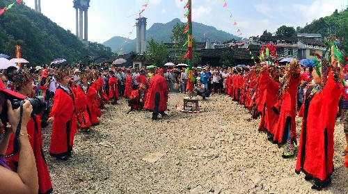 8月8日至9日,默戎镇龙鼻村墨戎苗寨内彩旗飘飘、人头攒动,苗族传统节日——“赶秋节”在这里隆重举行。来自四方的宾客及周边县市的48个苗寨的苗族同胞万余人纷纷聚集在龙鼻赶秋场以歌会友、以舞传情,行赶秋之礼以祈祥龙赐福、祈风调雨顺、祈六畜兴旺、祈五谷丰登。