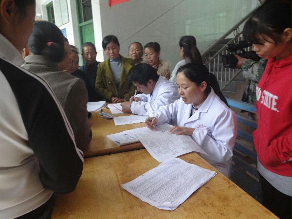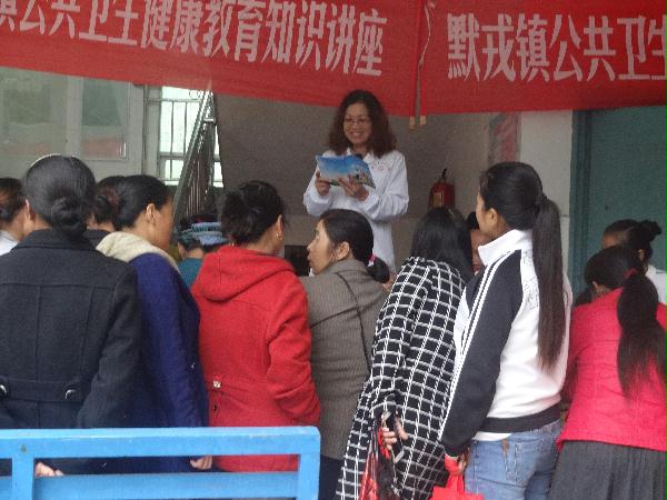 工作人员宣传农村妇女“两癌”检查项目相关政策